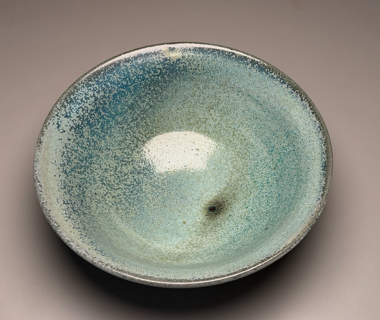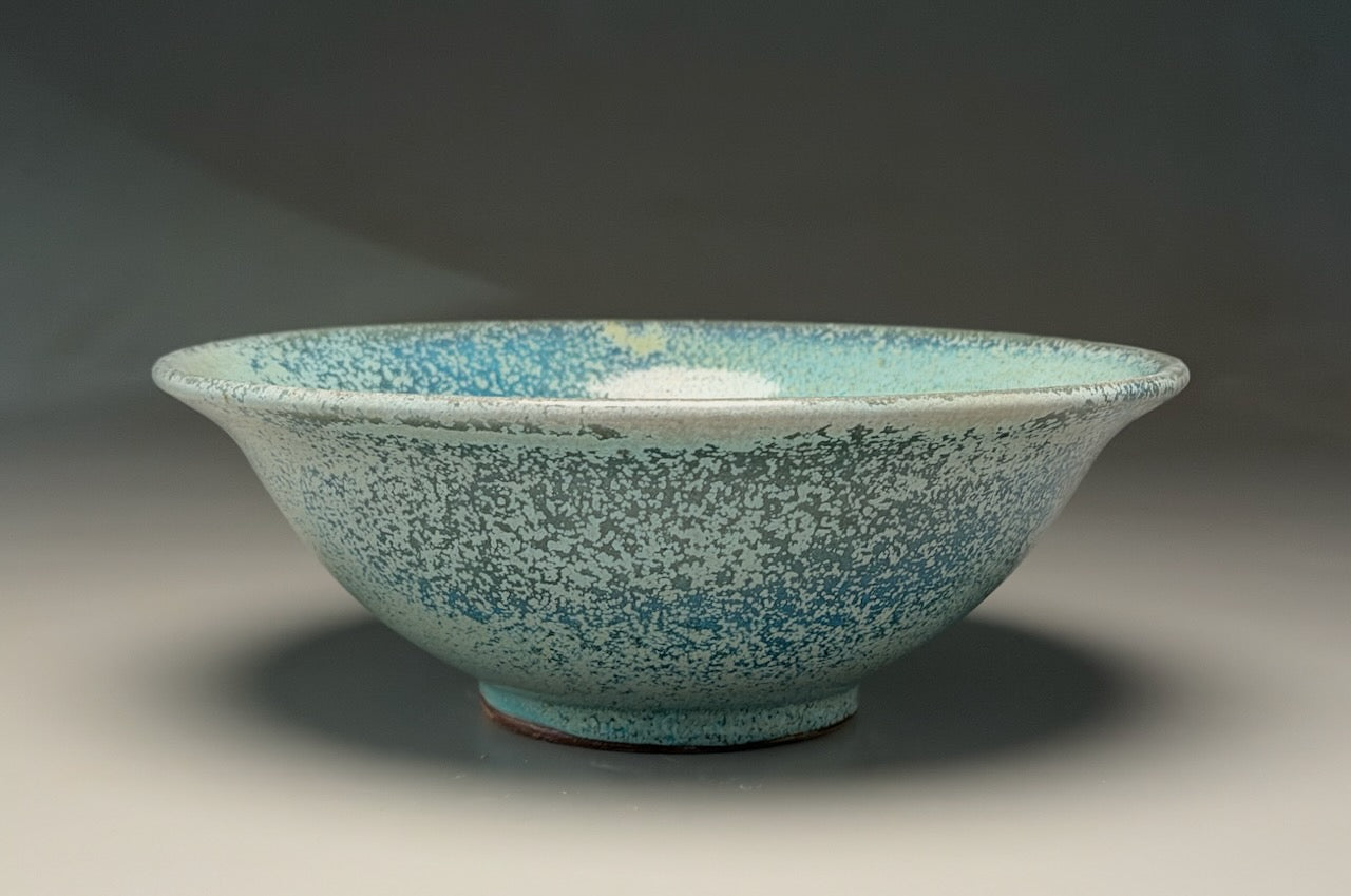Discover the perfect vessel for sharing life's best moments.  This handmade Trumpet Flair Bowl by Ben Owen III features an elegant flared silhouette and captivating patina green finish that commands attention on any table.  At 10 inches in diameter, it's generously sized for family gatherings and entertaining.  Crafted with meticulous attention to detail, this bowl transcends its practical purpose to become a cherished heirloom.  The tradition of presenting food in beautiful serving pieces connects us across cultures and generations—make this artisan creation part of your family's story.  Own a piece of functional art that celebrates craftsmanship and brings warmth to every occasion.  Dishwasher- and microwave-safe.  Measuring 10”dia. x 3.75"h.