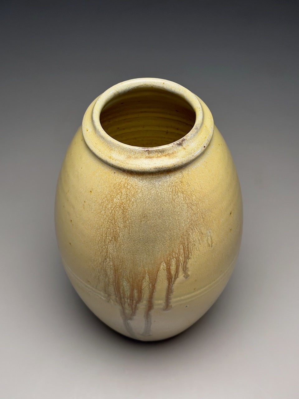Developed by Ben Owen III in late November 2025, the Satin Yellow glaze brings an enticing warmth to any setting.   The matte finish radiates understated elegance, while a dense iron-oxide application generates delicate micro-crystalline formations across the surface—inviting touch as much as sight.  Subtle rust-orange undertones emerge through the glaze breaks, echoing the intensity of traditional wood-firing techniques.  Bringing an inviting depth that captures the heart of wood firing - high reward from high effort - Satin Yellow is a new favorite for collectors.