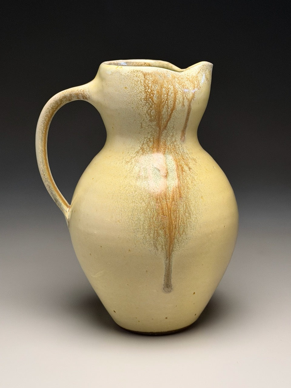 This distinctive Pitcher in Satin Yellow, inspired by the beauty of nature, harmoniously blends traditional craftsmanship with modern design. Bring a cozy ambiance and subtle rustic elegance to any room with this classic and stylish pitcher. Ideal for serving your favorite cool beverages, this pitcher adds an elegant, artisanal touch to any table setting. Dishwasher- and microwave-safe. Measuring 6.25"l x 5"dia x 8"h.