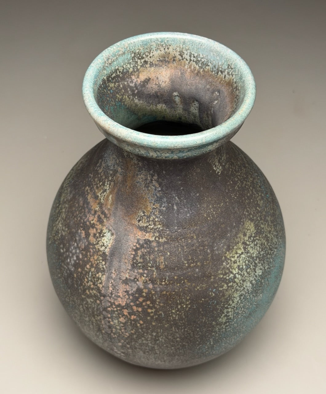 The Patina Green Glaze was first developed by Ben III, in the early 1990’s while in college at East Carolina, as a glossy forest green made from a copper pigment. When testing the glaze in the wood kilns back home at the family pottery, the results were strikingly different with many variations of color and surface. If fired in the wood kiln with no salt added to the firing, the color will be a darker green with small crystals on the surface. If finished in a wood and salt firing, the salt will brighten the color and create more blue-green hues with random small crystals on the surface.