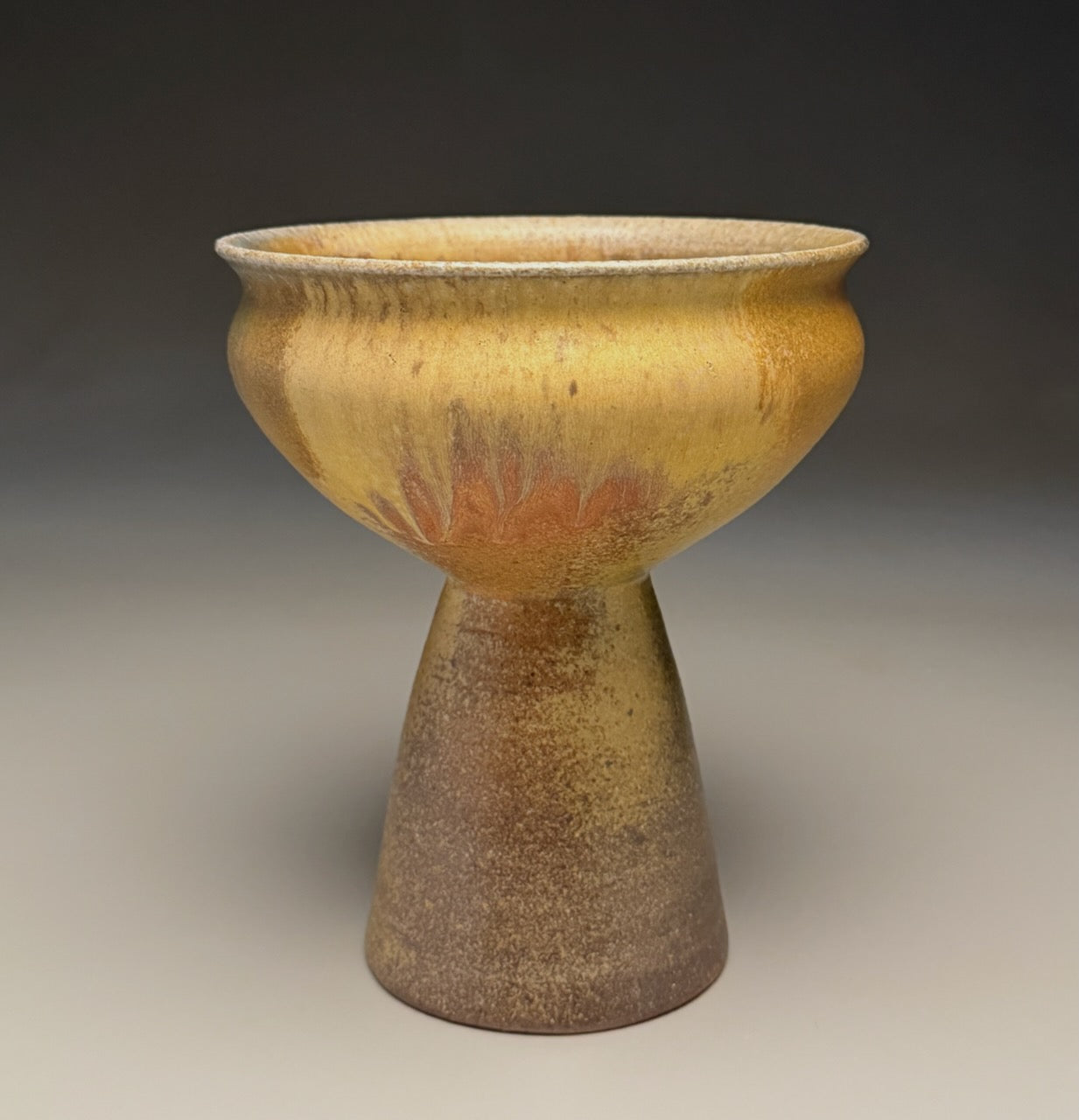 Silas Bradley's latest creation brings refined artistry to your table. This handcrafted pedestal bowl features a captivating blend of matte yellow and ash glazes that command attention while maintaining understated elegance. At 7 inches tall, it's the perfect vessel for showcasing your finest dips, spiced oils, or artisan breads. More than functional, this one-of-a-kind piece transforms everyday entertaining into an occasion, making it an essential addition to homes where thoughtful design and quality craftsmanship matter. Dishwasher-safe. Measuring 6"w x 7"h.