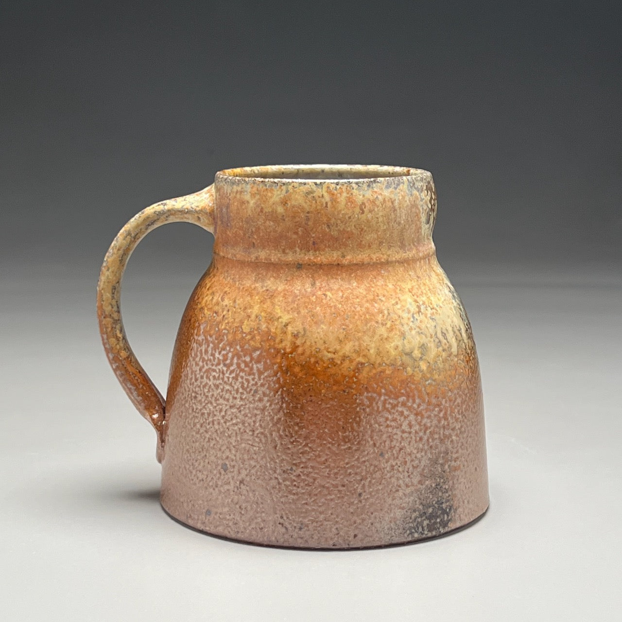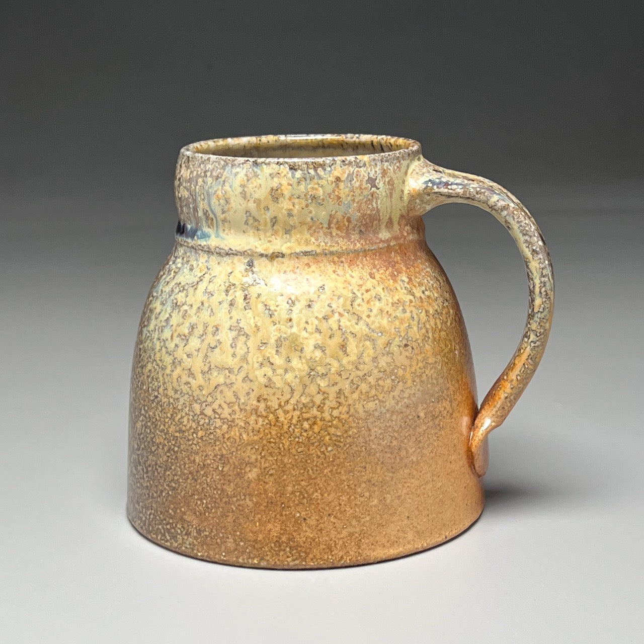Ash glazes allow us to “let the kiln be the paintbrush” by relying on the wood-firing process as the glazing agent. Most pieces dedicated to Ash glazing are placed in the kiln with little to no glaze applied to the exterior. During the firing process, the wood is stirred occasionally in the firebox to give flight to the flakes of ash that are produced during the firing. Airborne flakes cling to the exposed areas of the pot and accumulate over time. As the kiln reaches 2300° Fahrenheit, the accumulated ashes begin to melt and form a natural glaze. When the wood-burning kiln is heated to over 2400°, the wood ash liquefies and runs down the side of the pot like honey.