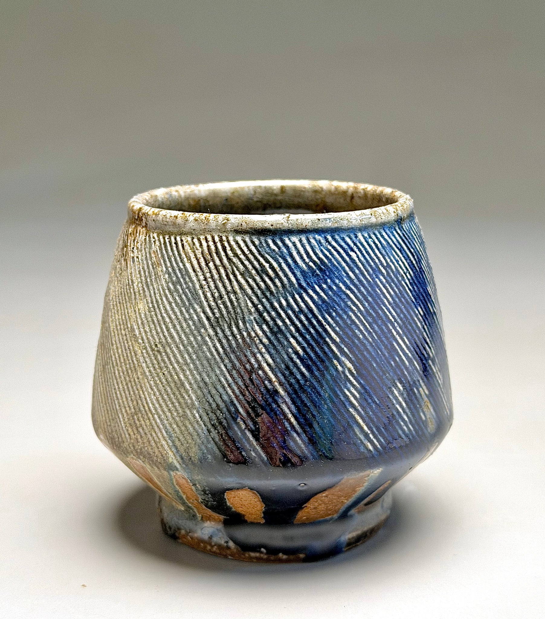 Combed Cup in Cobalt & Ash Glazes, 3.5"h (Ben Owen III)