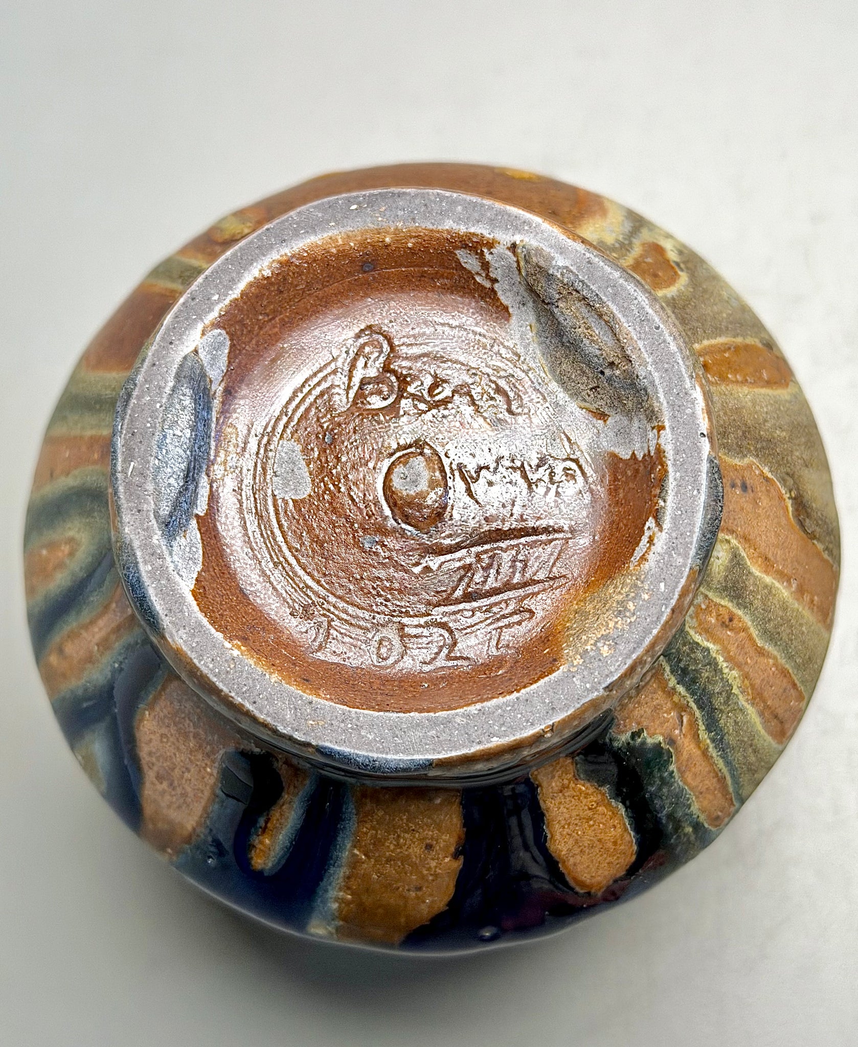 This Combed Cup in Cobalt & Ash Glazes is a an iconic decorative combination from Ben Owen III.  The cobalt pigment blended with the ash during the kiln firing creates a completely individualized piece.  The angled foot is an influence from Ben's studies in Japan.  Dishwasher- and microwave-safe.  Measuring approximately 3.75”w x 3.5”h.