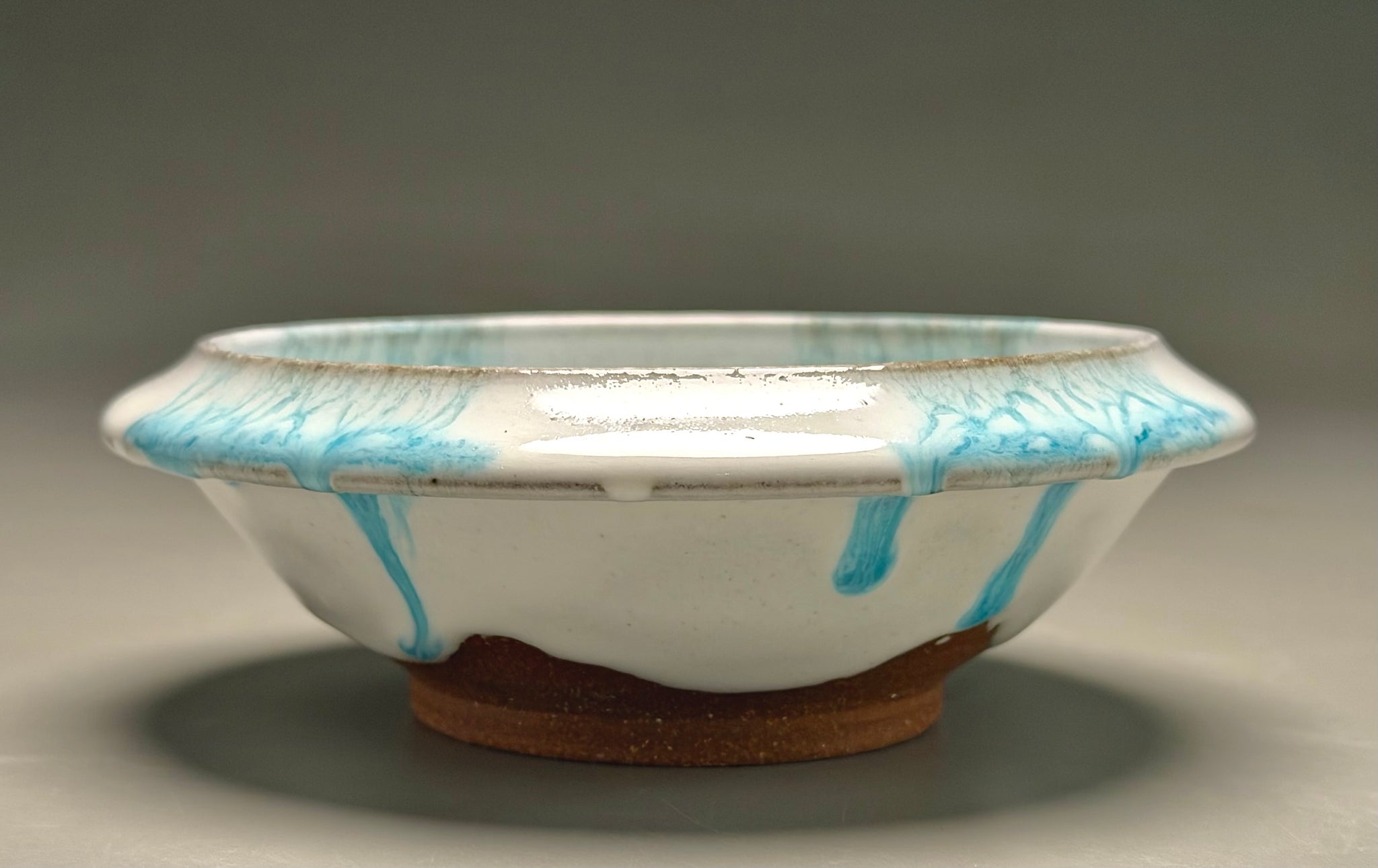 This Ming Bowl is a unique style with a wide rim that is influenced by clay forms created during the Ming Dynasties in Chinese culture.  The Ming Bowl form has been made for three generations in Ben III’s family.  The thick application of the Dogwood White glaze provides a look of icing on a cake.  The scalloped design on the base is influenced by techniques seen in early Chinese glazed pottery during the Song and Tang Dynasties and early Japanese techniques.  The rich color of the red clay compliments the white glaze coating.  A great serving bowl for food, and, a perfect display for floating flowers on a table.  Both dishwasher- and microwave-safe, you’re sure to enjoy this lovely bowl daily.  Measuring 6” outer diameter x 5" top inner diameter x 2"h.