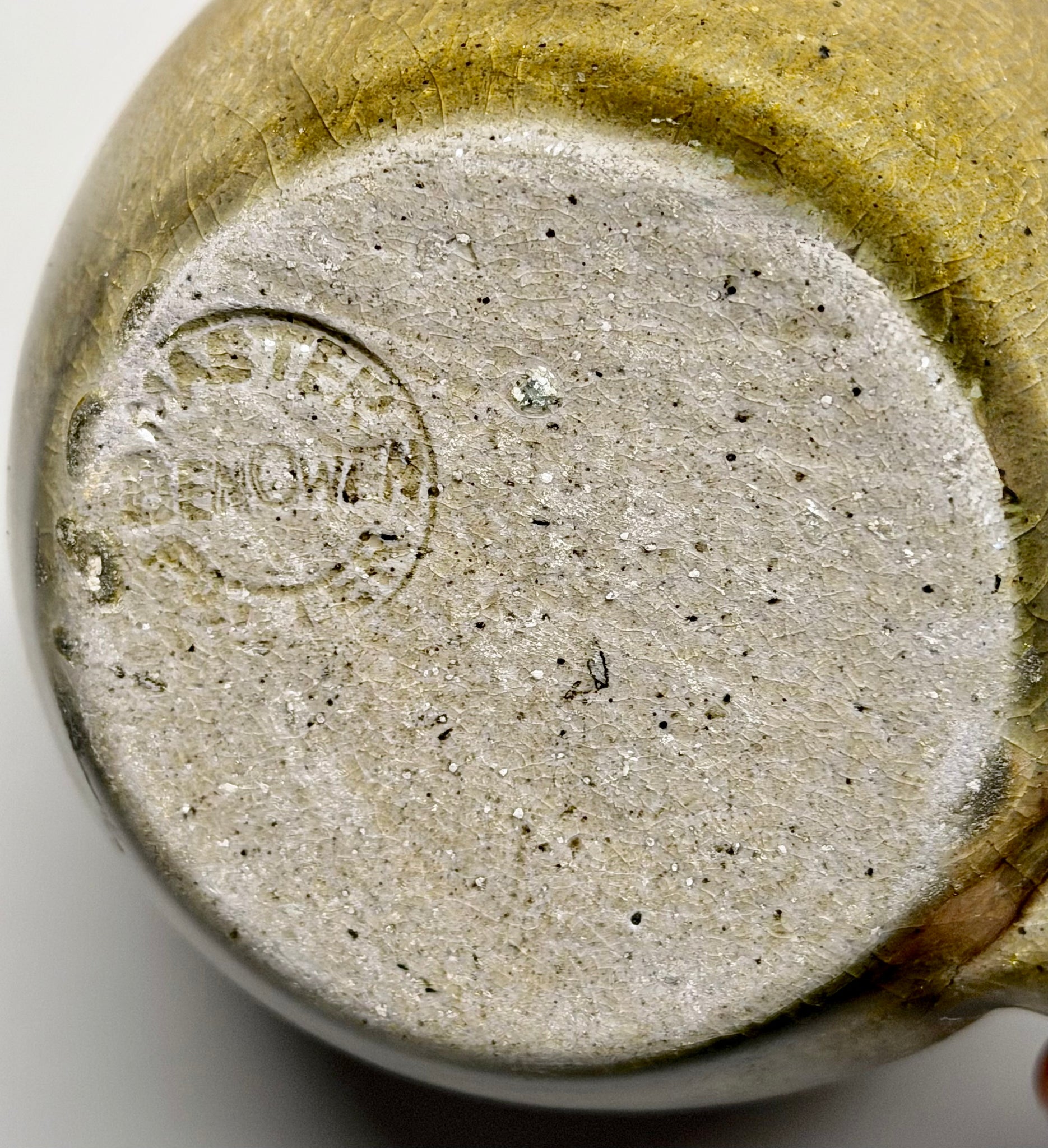 This distinguished barrel mug represents a remarkable artifact from Ben Owen Sr.'s prolific career, meticulously handcrafted during the 1960s. The refined Frogskin glaze—a hallmark of his celebrated body of work—demonstrates the technical mastery and aesthetic sensibility that defined his legacy in American pottery. Remarkably preserved and entirely serviceable, this piece offers both historical significance and practical elegance for the discerning collector. Dishwasher- and microwave-safe. Measuring 5"l x 3.75"w x 4"h.