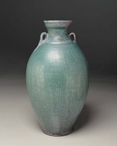 Two-Handled Vase with Combed Lines in Patina Green, 12.75"h (Ben Owen III)