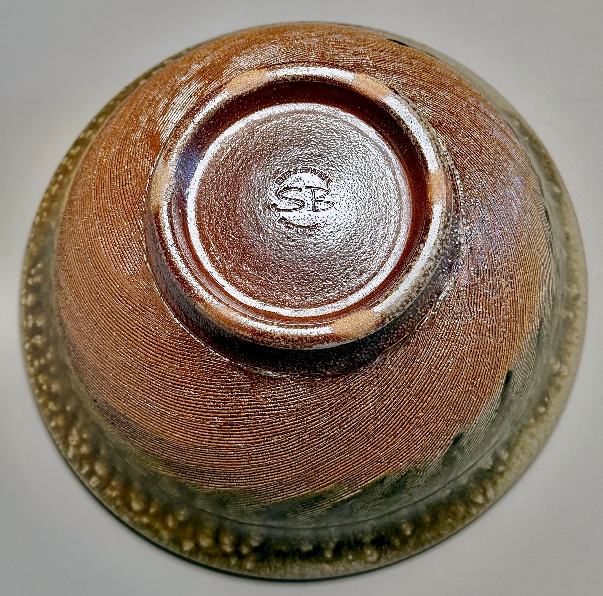 This piece is stamped "Ben Owen Pottery" with initials hand-signed "SB".