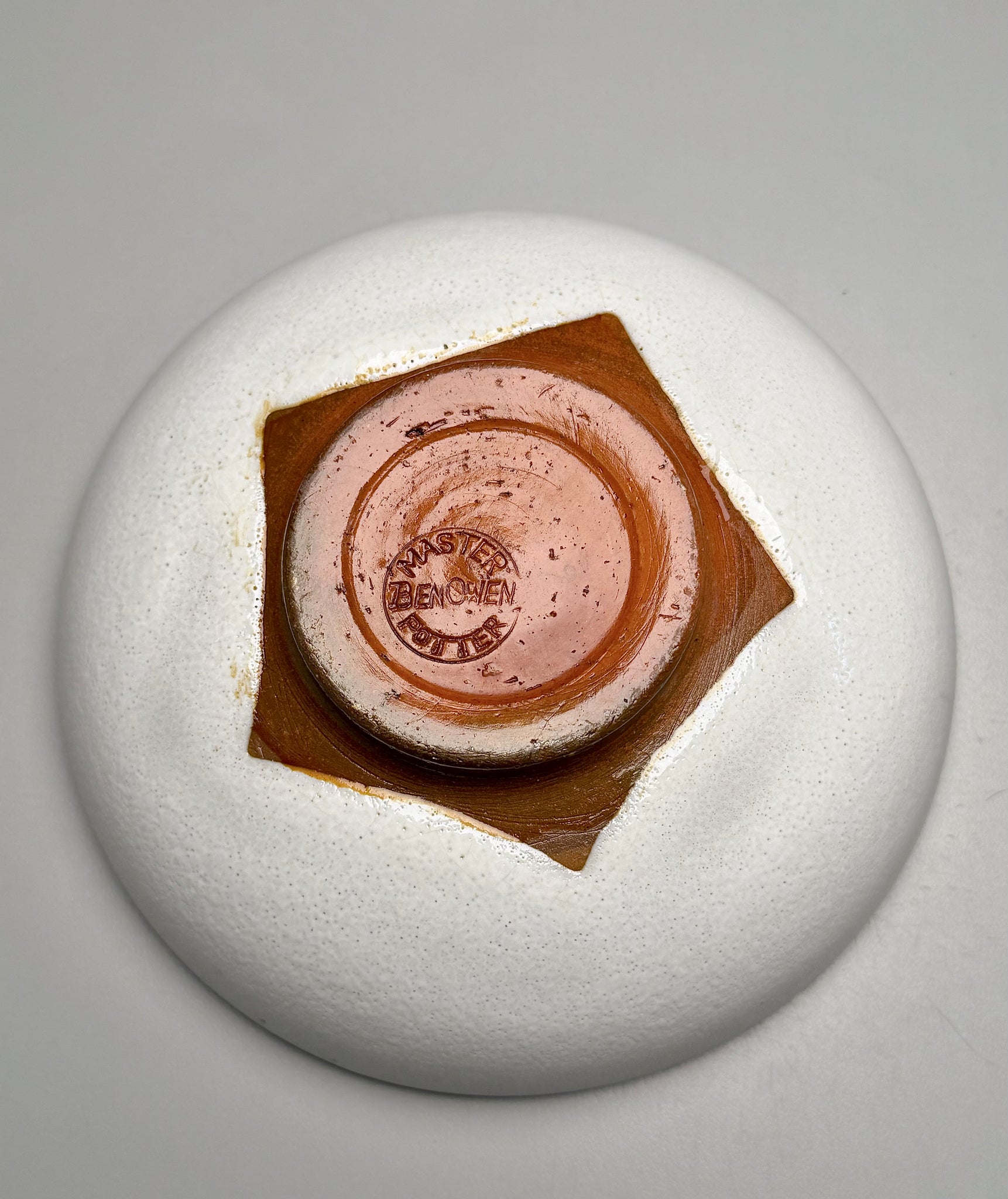 Made by Ben Owen Sr. circa the 1960s. Stamped "Master Potter Ben Owen".