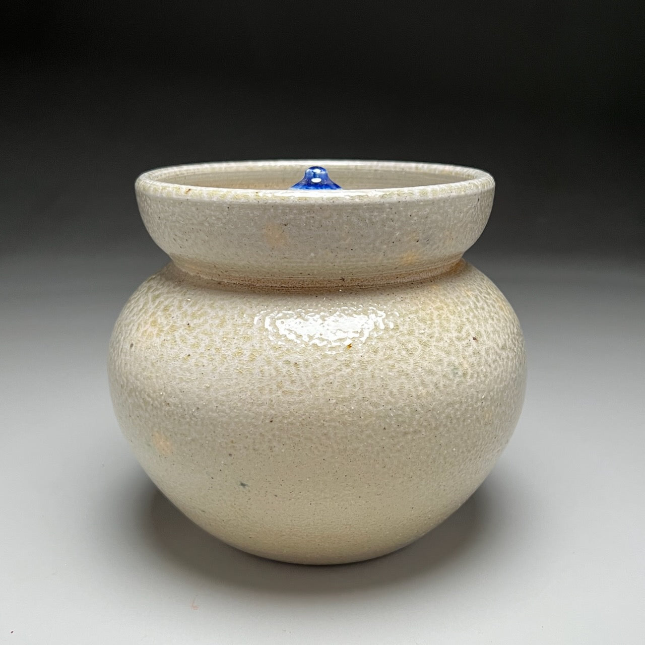 Salt Glaze was first discovered by German potters in the late 14th century. Due to the high firing temperatures, stoneware clays are required. The pieces can be handled and decorated with clay slips of many different colors, or, glazed partially with Cobalt Blue Glaze. The surface may resemble the texture of an orange peel. This was an early glaze used by settlers during the 19th century in the Seagrove area. Many of the pieces Ben makes in Salt Glaze are functional, even the more decorative large-scale pots.