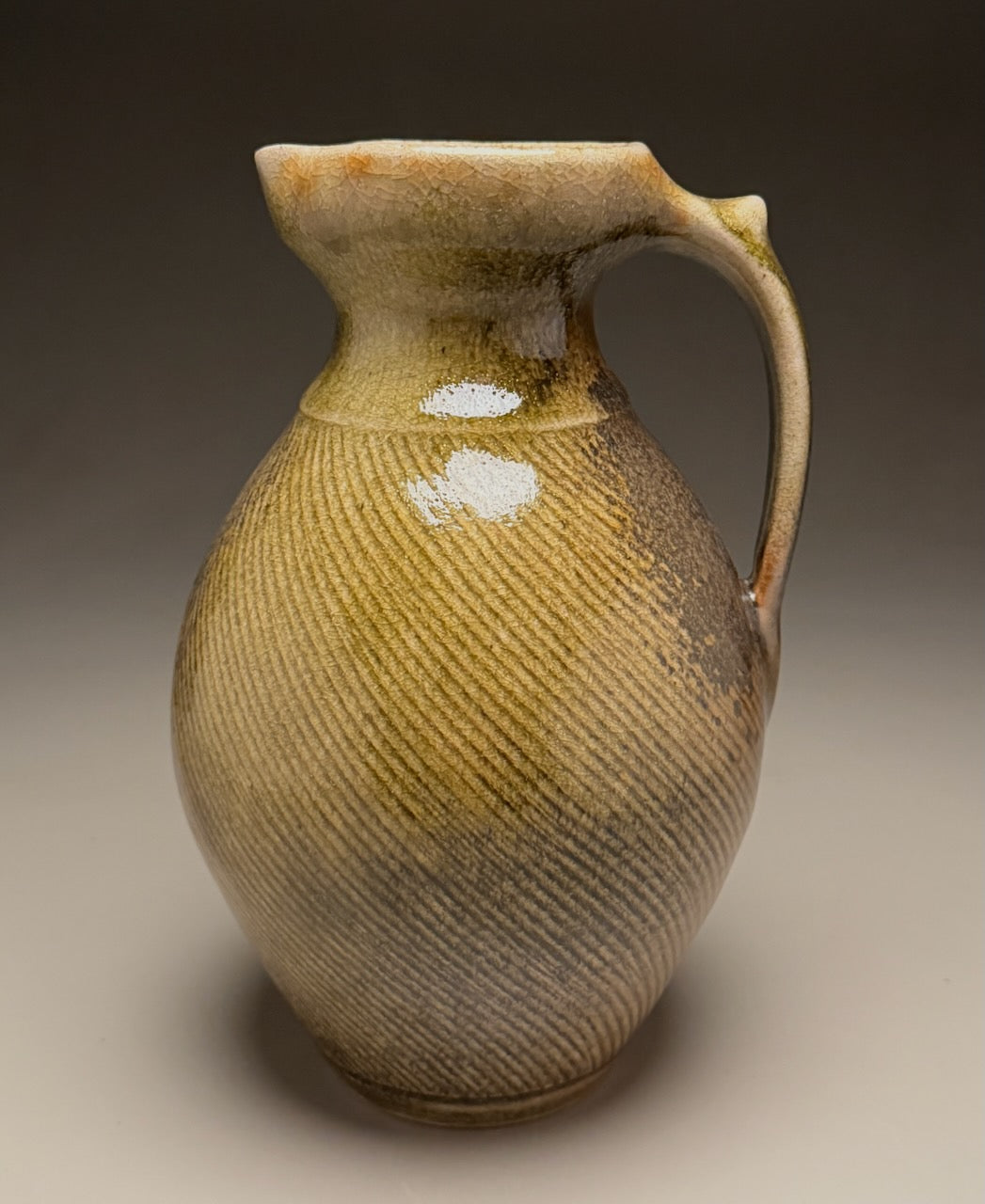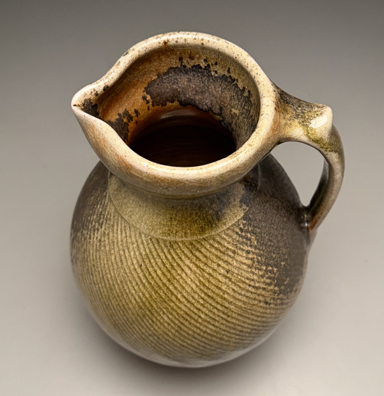 Discover the timeless elegance of this wood-fired pitcher, where traditional English design meets the unpredictable artistry of kiln firing. The combed lines accent a graceful silhouette, while the stunning Copper Penny finish showcases nature's own palette—ash glaze and organic texture created by the flames themselves. Each piece is uniquely transformed by the wood kiln, making this Combed Pitcher a functional work of art that brings warmth and character to any table. Measuring 6.75"l x 6.25”w x 11”h.
