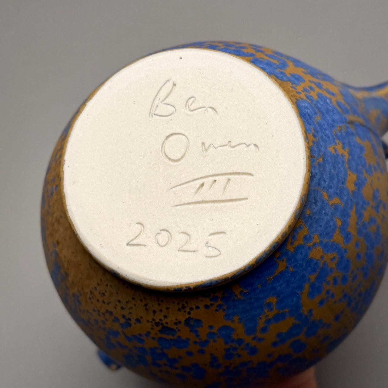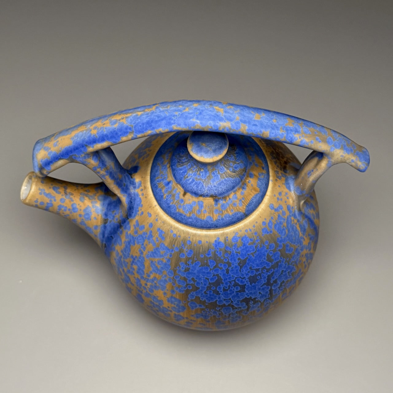 An exceptional example of Ben Owen III's Stardust Blue Matte Micro-Crystalline glaze! This unique teapot design is directly influenced by Ben III’s time spent studying traditional ceramic art in Japan. Ben only makes this style of teapot occasionally due to the time and process to make the post-and-lintel handle.