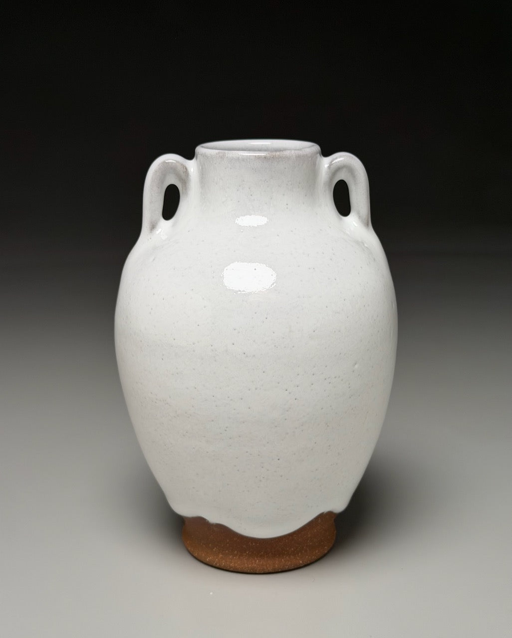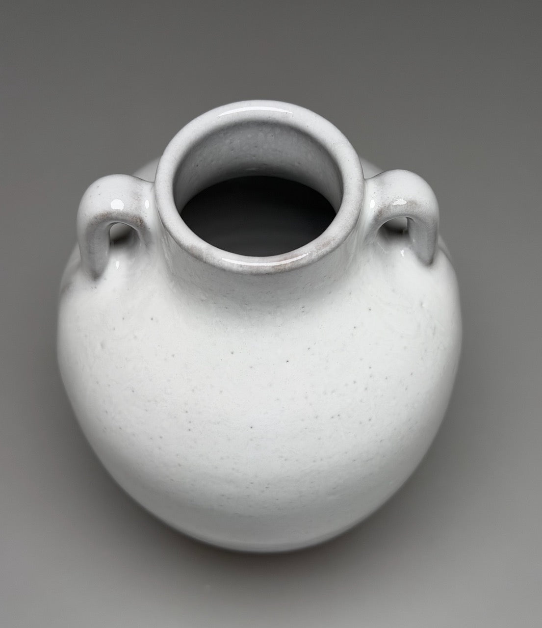 This vase is a classic form made by Ben Owen III. The two-handled jar has been a signature shape influenced by early Asian forms made during the Tang Dynasty.